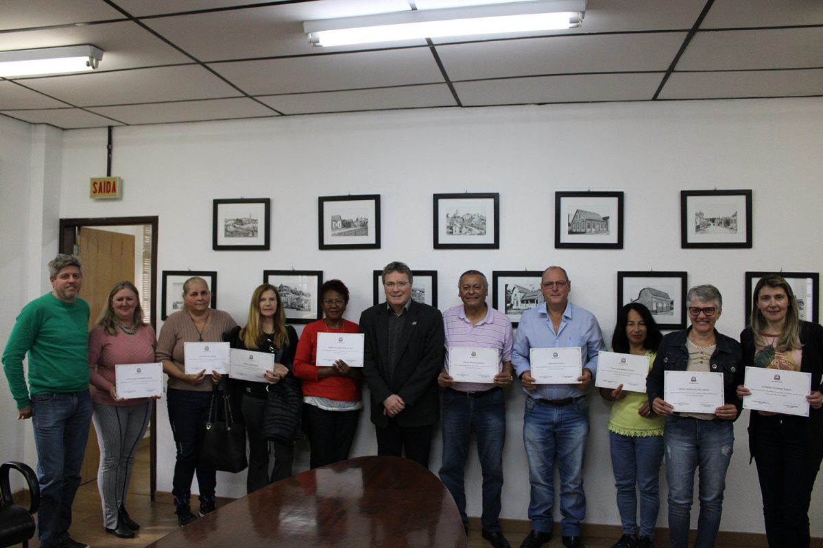 Receberam os certificados os seguintes servidores: Sebastião Pykosz, Sergio Mara K. Brock, Dagilda Conceição S. da Silva, Jane Janete Vaz Barbosa, Maria Lucia Rodrigues Martins, Eli Matilde Grosskopf Rudnick, Neusa Rodrigues dos Santos e Aurea Wawrzyniak.
