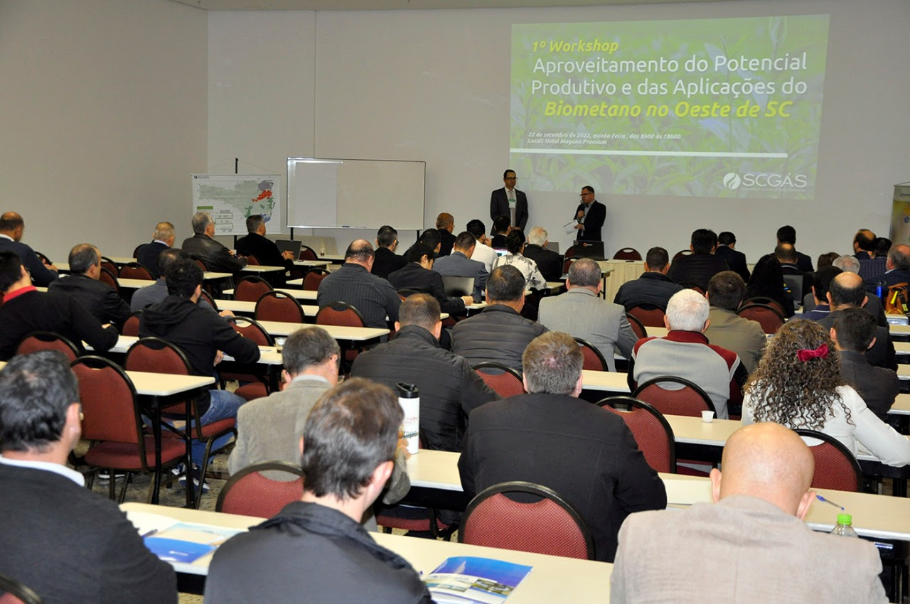 Perspectivas, projetos produtivos e aplicações de gás natural no Oeste catarinense foram temas do 1º Workshop Biometano no Oeste, que ocorreu nesta quinta-feira (22), em Chapecó. O objetivo é discutir o abastecimento da região, além de estimular a interação entre agentes da cadeia de produção, de distribuição e de consumo de biometano em um ambiente para networking e debates.