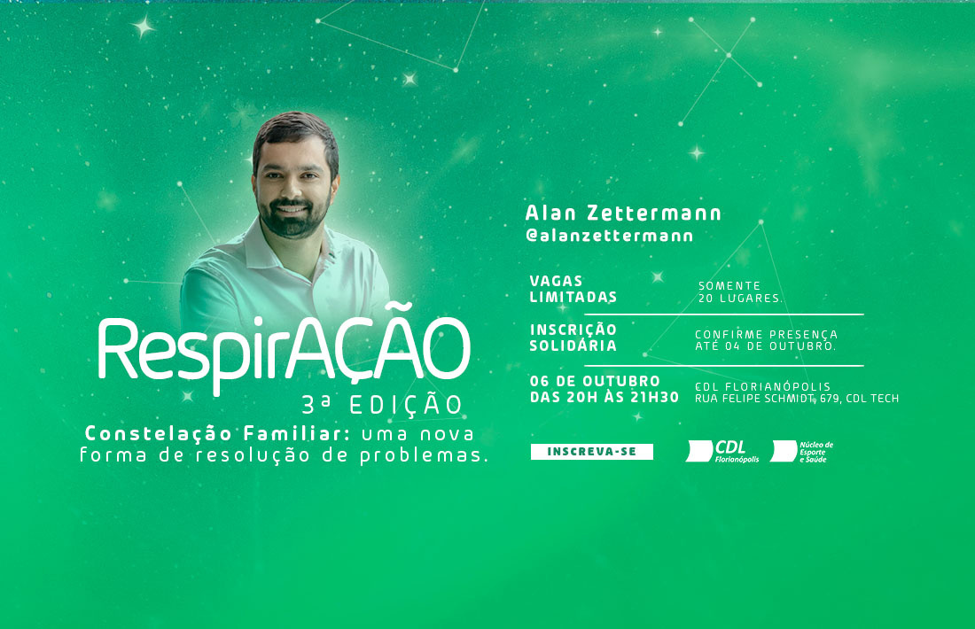 A busca pelo equilíbrio e pela resolução de conflitos tem se tornado cada vez mais frequente no cotidiano das pessoas e, com isso, a prática de terapias complementares vem ganhando espaço para obter um melhor entendimento das causas dos problemas. Sabendo da importância dessas terapias na vida das pessoas, o Núcleo de Esporte e Saúde da CDL de Florianópolis, promove a 3ª edição do RespirAÇÃO, com a prática de Constelação Familiar: uma nova forma de resolução de problemas, com o Terapeuta Integrativo Sistêmico, Alan Zettermann, no dia 6 de outubro, das 20h às 21h30, na CDL de Florianópolis.
