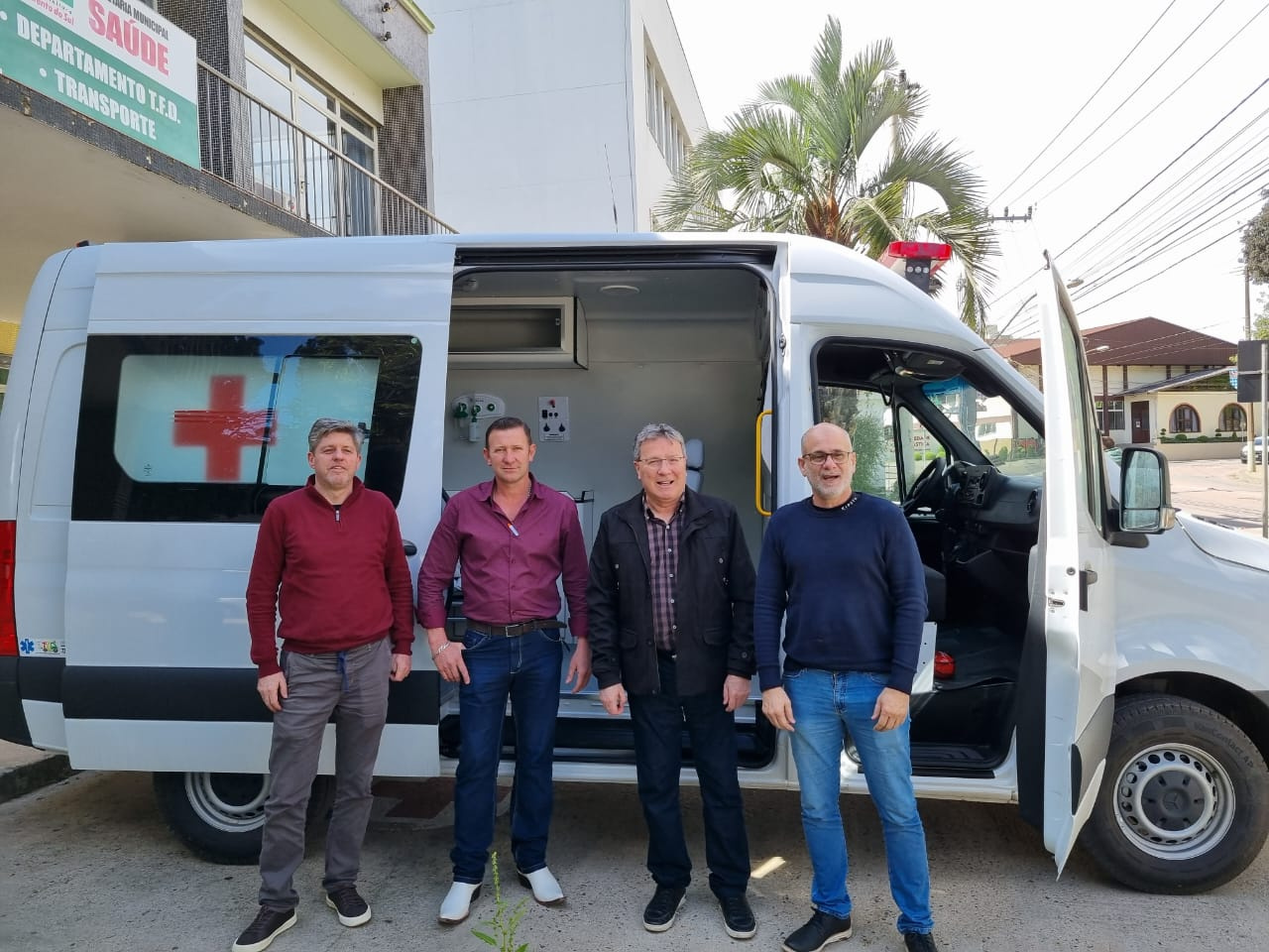 Nesta sexta-feira (7), o prefeito Antonio Tomazini e o vice-prefeito, Tirso Hümmelgen, receberam uma nova ambulância para a Secretaria de Saúde. O veículo será destinado ao transporte de pacientes hospitalizados no município, inclusive de alta complexidade, que necessitam de transferência para outras cidades e também, transporte dentro de São Bento.