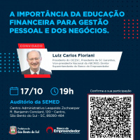A Prefeitura de São Bento do Sul, através da Secretaria de Desenvolvimento Econômico e Turismo e da Casa do Empreendedor, em parceria com o Banco do Empreendedor, promovem o workshop “A importância da Educação Financeira na Gestão Pessoal e dos Negócios", voltado aos empreendedores de São Bento do Sul.