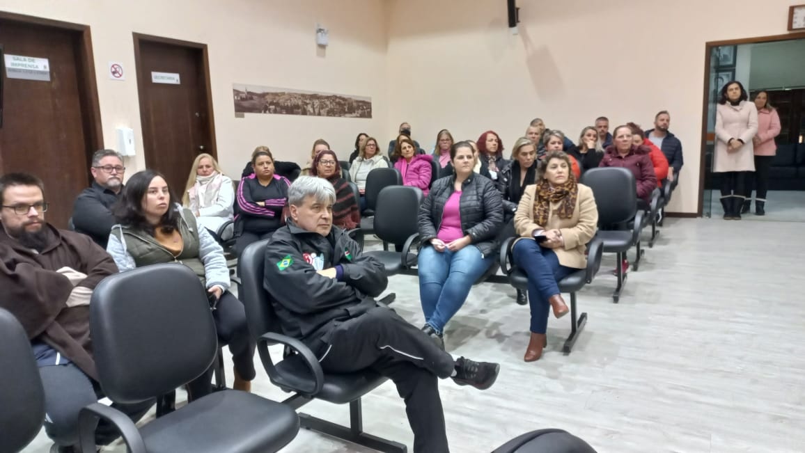 A reunião aconteceu no Plenário Luiz Carlos Contesini e contou com a participação dos professores da rede municipal que estão lutando pelo direito de receber o Piso Nacional do Magistério.