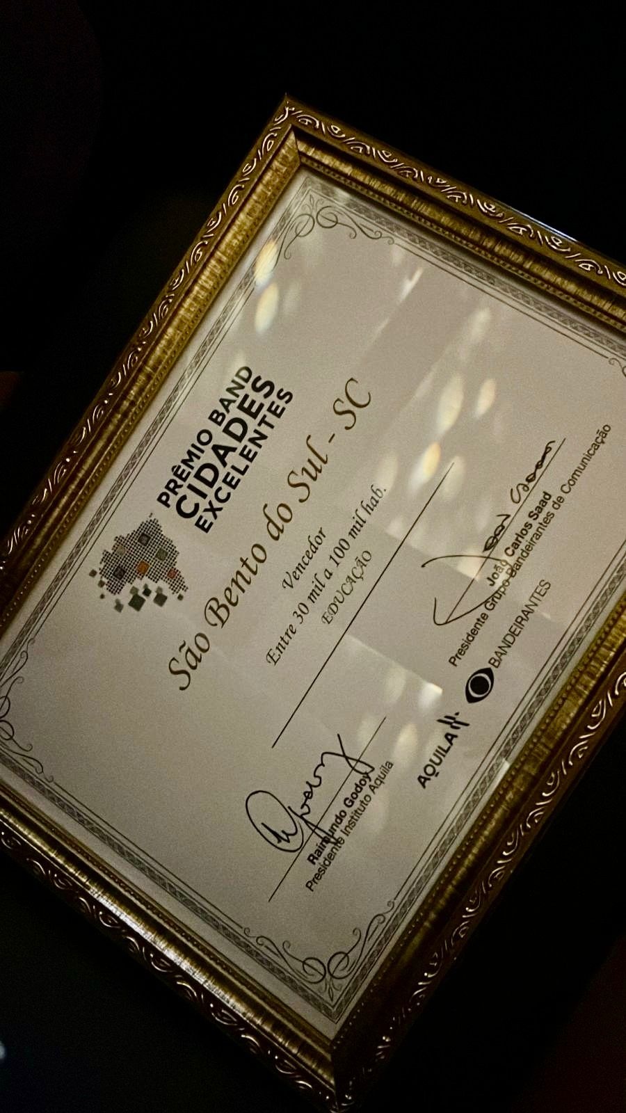 São Bento do Sul conquista, pelo segundo ano consecutivo, o 1º lugar nacional em Educação no Prêmio Band Cidades Excelentes 2025
