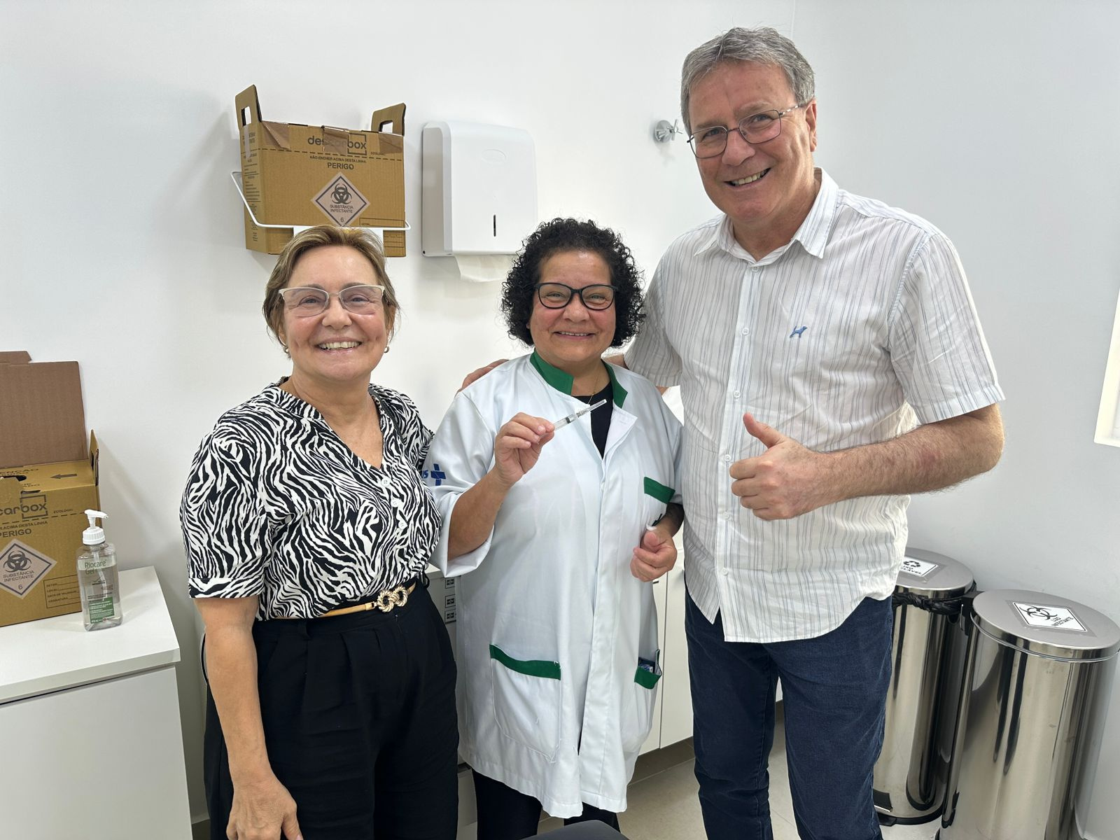 Entre as histórias que marcaram a ação, esteve a presença do senhor Mathias Herzer, de 97 anos, que aguardava na fila do Posto Central para receber a vacina contra a gripe, reforçando a importância da imunização e dando exemplo de cuidado com a saúde.