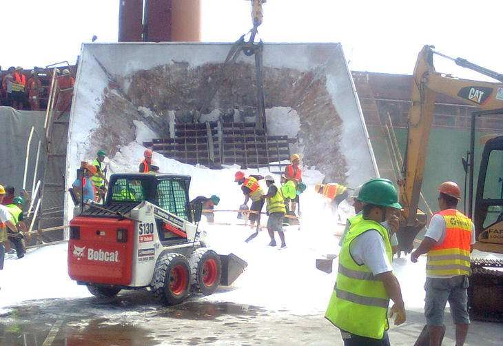O compartimento já estava cheio de soda em granel, com aproximadamente quatro toneladas, quando os quatro pilares de sustentação do reservatório quebraram, por volta das 9h. A parte de cima da estrutura desabou, despejando toda a carga usada para produtos de limpeza no chão.