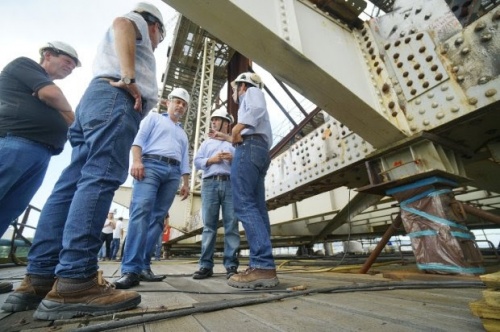 Governador visita obras de restauração da ponte Hercílio Luz pela primeira vez