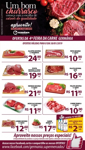 Ofertas Germânia Supermercados para esta Quarta-Feira da Carne, dia 30/01/2019.