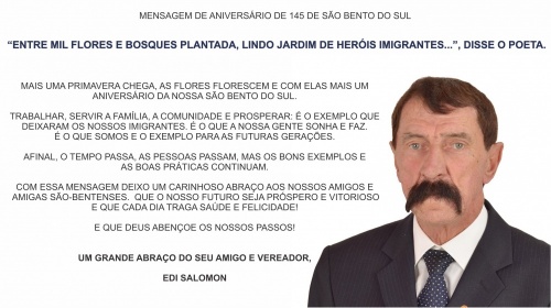 MENSAGEM DE ANIVERSÁRIO DE 145 DE SÃO BENTO DO SUL