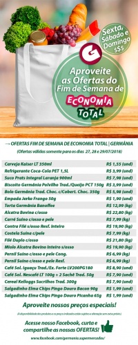 Promoção válida para para os dias 27, 28 e 29/07 no Germânia Supermercados