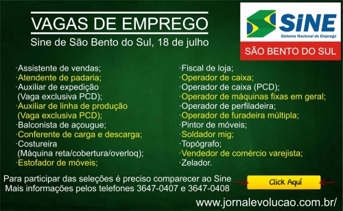 São Bento do Sul - Vagas de emprego no Sine atualizadas nesta quarta(18/07)