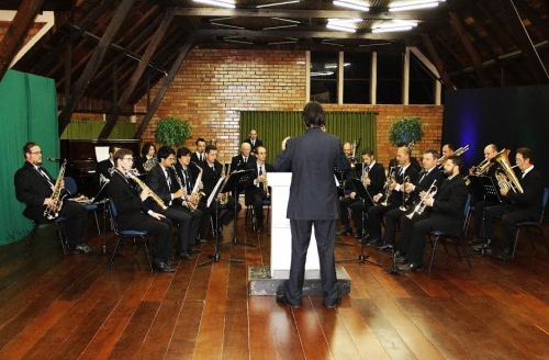 Banda Concerto de Rio Negrinho em apresentação no Oeste do Estado