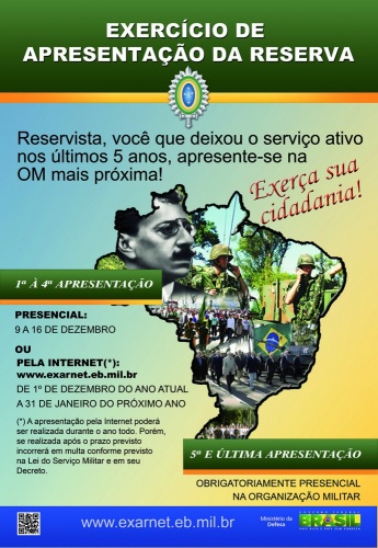 Exército Brasileiro estará realizando o Exercício de apresentação da Reserva (EXAR/2017)