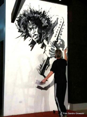 Artista Rio-Negrense realiza pintura no Café no Bule Pub & Grill em Rio Negrinho