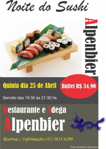Nesta quinta-feira, 25, tem Noite do Sushi no Alpenbier