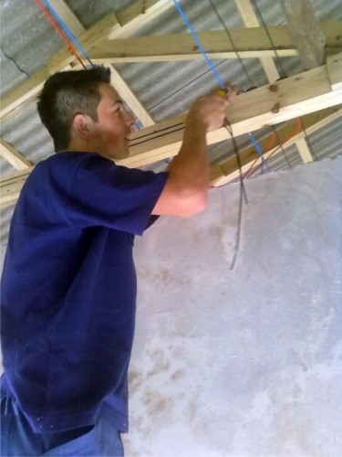 Instalação elétrica com ajuda de alunos