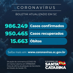 Estado confirma 986.249 casos, 950.465 recuperados e 15.663 mortes