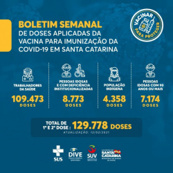 Vacinação em SC: 129 mil doses contra a Covid-19 foram aplicadas em Santa Catarina