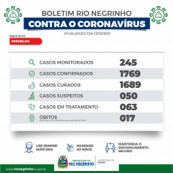 Rio Negrinho registra 16 novos casos de coronavírus